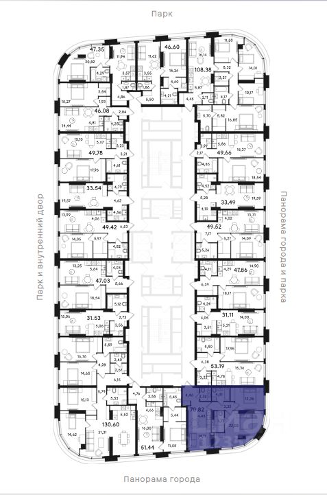Высота потолков — 3,2 метра, большие окна в пол. В квартирах предусмотрены инженерные решения для акустического комфорта и чистый воздух благодаря близости парка и современным системам вентиляции.