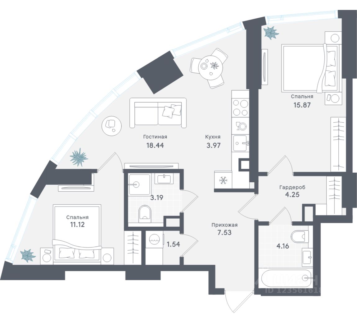 Высота потолков — 3,2 метра, большие окна в пол. В квартирах предусмотрены инженерные решения для акустического комфорта и чистый воздух благодаря близости парка и современным системам вентиляции.
