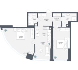 Высота потолков — 3,2 метра, большие окна в пол. В квартирах предусмотрены инженерные решения для акустического комфорта и чистый воздух благодаря близости парка и современным системам вентиляции.