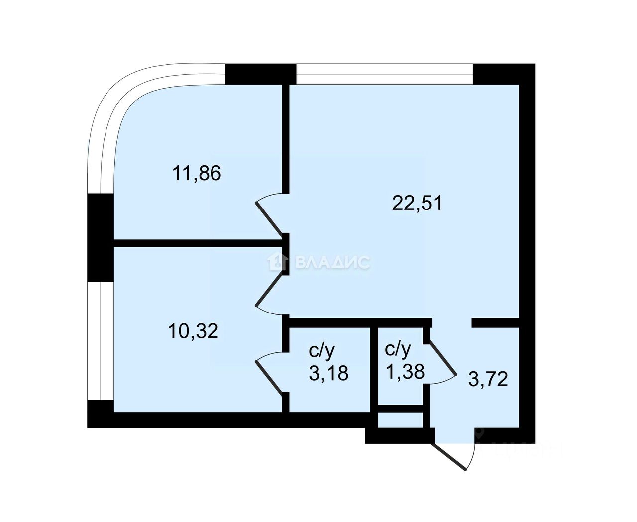 Общая площадь квартиры составляет 52,97 кв. м, из которых 22,18 кв. м — жилая площадь, 22,51 - просторная кухня гостиная.