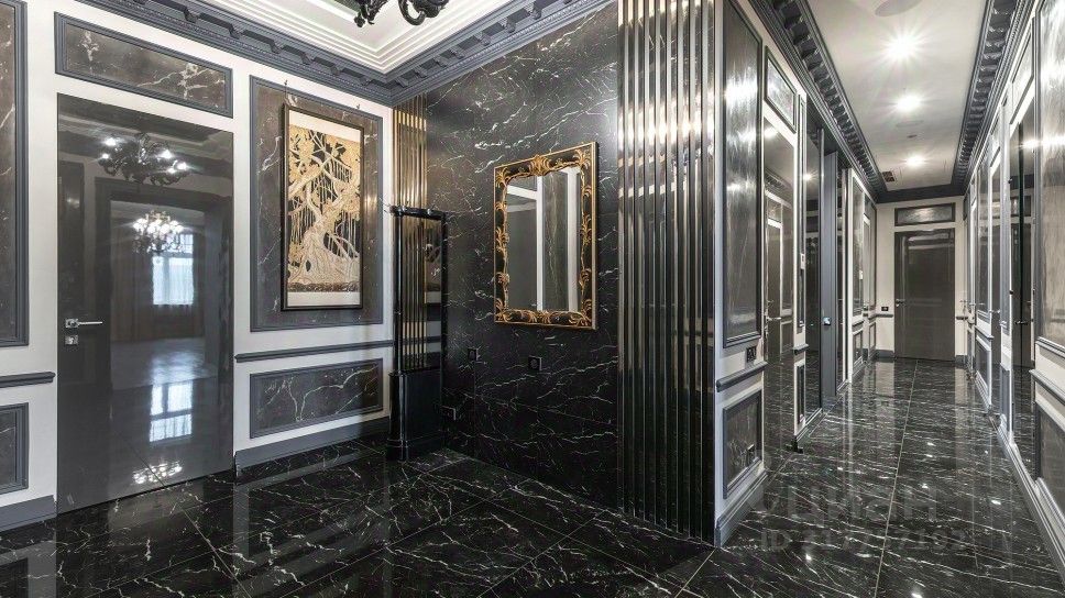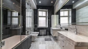 В квартире располагается гостиная, кабинет, автономная мастер-спальня, две детских комнаты с с/у, кабинет или гостевая-спальня, а также полностью профессиональная кухня и гостевой с/у. Высота потолков 3.8 метра. В квартире выполнен дорогостоящий ремонт. Квартира полностью меблирована и укомплектована всей необходимой бытовой техникой от ведущих мировых производителей: Roberto Cavalli и Mania. Установлена антикварная мебель Zanaboni, керамика Villeroy&Boch, сантехника Philippe Starck и Villeroy Boch.