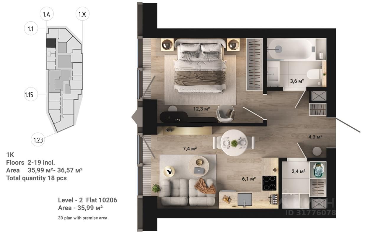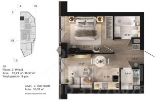 Продается квартира, площадью 36 кв.м. в престижном жилом комплексе JOIS в районе Хорошёво-Мнёвники. Квартира расположена на 4 этаже 57-этажного здания и предлагается в предчистовой отделке MR Base, что позволит вам воплотить все ваши дизайнерские идеи.