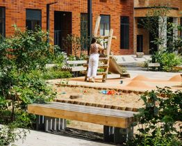Проект состоит из корпусов с подземными паркингами, школа и детский сад. В зелёных дворах-парках будут места для отдыха, современные детские и спортивные площадки. На первых этажах откроются магазины, кафе и другие сервисы — за кофе и свежим хлебом к завтраку можно будет просто спуститься на лифте.