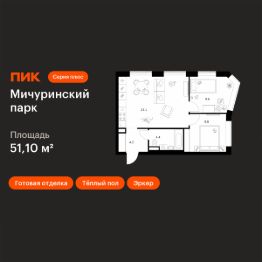 Продаётся 2-комн. квартира площадью 51,1 кв.м на 13 этаже 31 этажного дома (Корпус 4.3, Секция 2) проекта ПИК Мичуринский парк. Светлый просторный подъезд на уровне земли, функциональная планировка, большие окна, c отделкой.