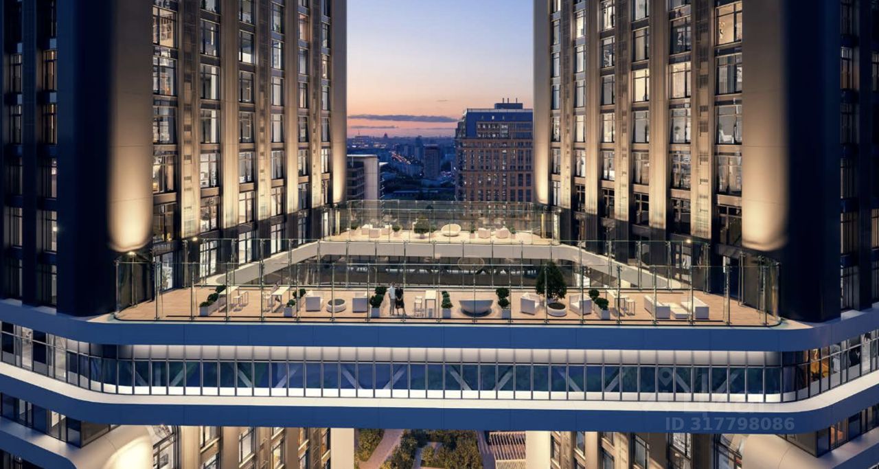 СОБЫТИЕ 4 - единственный в столице жилой небоскреб премиум-класса с парком на высоте 170 м и парящими мостами на уровне 25-27 этажей. Это эксклюзивный для Москвы вертикальный город будущего, в котором на разных уровнях дома, от земли до неба, есть своя инфраструктура для отдыха, спорта и работы. На парящих мостах обустроены лаунжи и коворкинги. На крыше - обзорная площадка, беговая дорожка, воркаут, игровая зона и места тихого отдыха. Из дома открываются потрясающие виды на парки, МГУ, Сити и Поклонную гору.