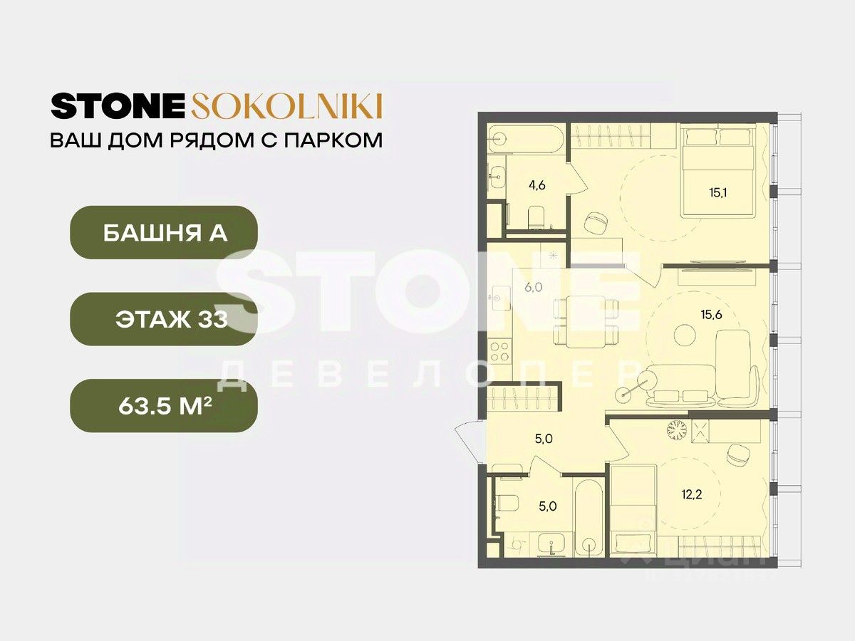 Старт продаж квартир в ЖК STONE SOKOLNIKI от девелопера STONE. В продаже просторная двуспальная квартира с кухней-гостиной и двумя спальнями для реализации любого дизайн-решения, идеально подходящая молодым парам, которые только планируют пополнение, а также небольшим семьям, где малыш уже подрастает. Современная архитектура проекта органично вписана в городскую среду. Концепция проекта разработана архитектурным бюро WALL Проект состоит из трех разновысотных башен высотой в 33, 28 и 24 этажа с чистой геометрией и увеличенной площадью остекления, которая позволит насладиться городской панорамой и видами на парк "Сокольники". Транспортная доступность - 10 мин. пешком до метро и БКЛ "Сокольники" и "Электрозаводская" - 12 мин. пешком до парка Сокольники - 10 мин. пешком до станции МЦД-3 "Митьково", которая позволит комфортно добираться в центр города и за его пределы Инфраструктура: В каждой входной группе предусмотрены помещения для временного хранения велосипедов, лапомойка, гостевой санузел, а также комната матери и ребенка. А колясочные появятся на каждом этаже - ведь это самое удобное решение для детей и их родителей. Планировочные решения: Планировки квартир в STONE Sokolniki создавались с учетом разнообразия современных сценариев жизни в городе. В проекте предусмотрены просторные кухни-гостиные, изолированные спальни с мастер-блоком, планировки для семей со взрослыми детьми, с двумя детьми разных возрастов. Благодаря грамотному зонированию квартир можно насладиться и временем с семьей, и уединением или, наоборот, устроить вечеринку вместе с друзьями. - Квартиры от 28 до 135 кв. м. Детский сад во дворе дома: Девелопер STONE осуществляет самостоятельный поиск оператора для детского сада, так как курирует наполнение проекта. На этапе финальной готовности будет выбран лучший оператор, отвечающий запросам качества и цены. Во всех своих проектах девелопер берет на себя ответственность за сдачу части помещений. Удобное хранение: В проекте STONE Sokolniki предусмотрена максимальная обеспеченность кладовыми. Хранения велосипедов в подземном паркинге возможно в зимний период, а летом будет организовано временное хранение на улице. Колясочные есть на каждом этаже всех трех жилых башен. - Колясочные на этаже - Кладовые для хранения Безопасная собственная территория дома, сим и паркинг: Внутри двора комфортно перемещаться пешком, все въезды в паркинг организованы по внешнему периметру. Велосипеды, самокаты и электросамокаты, детские беговелы и коляски - в приоритете, для всех колесных видов транспорта продуманы удобные маршруты движения и варианты хранения в разные сезоны. STONE - девелопер коммерческой и жилой недвижимости классов бизнес и премиум в Москве с 18-летним опытом. С 2022 года занимает лидирующую позицию на офисном рынке (рейтинг РБК). Сегодня в портфеле девелопера представлено 2,5 млн кв. м построенных, строящихся и проектируемых объектов, из которых более 850 тыс. кв. м находятся в стадии строительства. Компания имеет самый