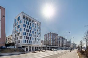 Архитектура отдаёт дань истории ажурным контуром и фактурой фасадов, во внешней отделке которых впервые в российской практике использованы греческий мрамор Silver Cloud и керамический кирпич ручной формовки от концерна Wienerberger AG.