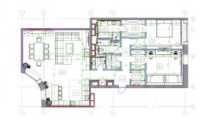 В квартире выполнена предчистовая отделка WHITE BOX, включая шумо и гидроизоляцию, теплый пол, монтаж внутренних инженерных систем: cистема VRV вентиляции и кондионирования воздуха Daikin, отопление, водоснабжение, водоотведение, электроснабжение.