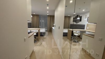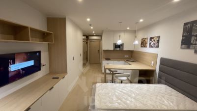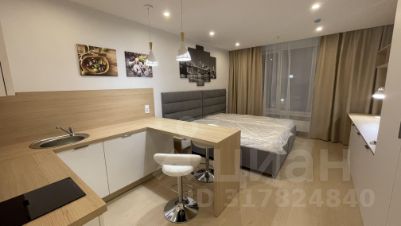 В квартире сделан качественный евроремонт( была произведена замена окна и ламината). Просторная и светлая студия обставлена современной мебелью( фирмы Стильные кухни) и оснащена всей необходимой техникой. Планировка продумана до мелочей: все для вашего комфорта. Окна выходят во двор, поэтому в квартире всегда тихо и спокойно. Совмещенный санузел выполнен в современном стиле.