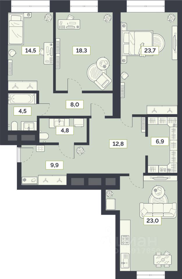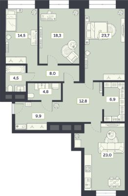 Продаётся 3-комнатная квартира в сданном доме (Староалексеевская, 5А (5а)), срок сдачи: I-кв. 2022, общей площадью 126.4 кв.м., на 24 этаже.