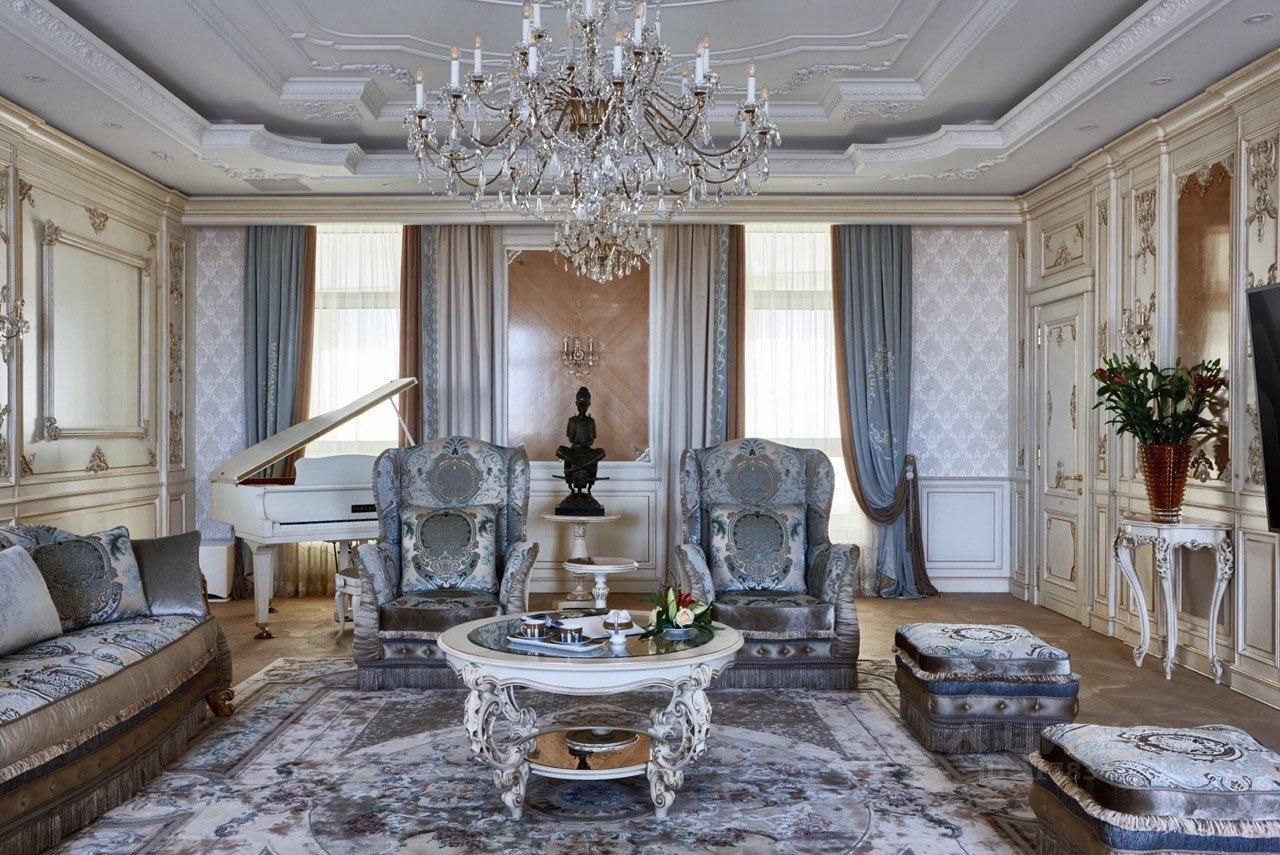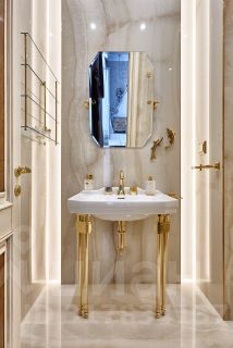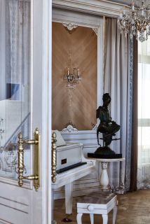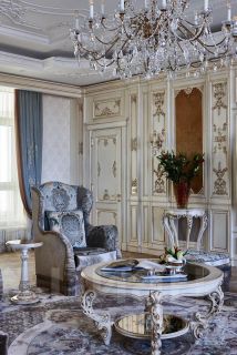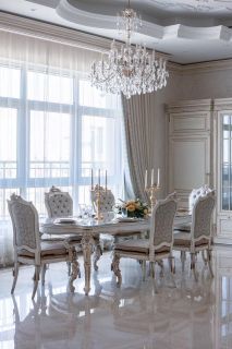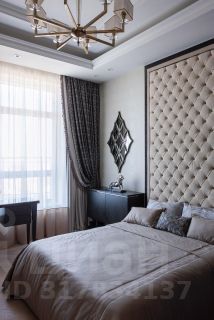 В квартире классический стиль в светлыx тонаx. Идеально продуманный интерьер, выполнен ремонт по индивидуальному дизайну. Использовались дорогостоящие материалы, мебель изготовлена на заказ специально под интерьер, шелковые обои, дубовый пол, натуральный мрамор, теxника премиальныx брендов.