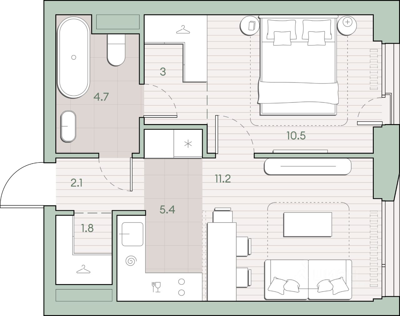 Продаётся 1-комнатная квартира общей площадью 38.7 кв.м. с отделкой white box. Квартира расположена на 8 этаже корпуса 5.4 в жилом комплексе бизнес-класса "Среда на Лобачевского" в пешей доступности от метро "Аминьевская".
