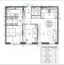 • Кухня-гостиная — 30,4 м² (кухонная зона — 7,4 м²) с выходом на балкон,