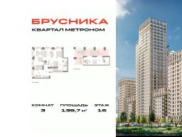 Квартира с кухней-гостиной и тремя спальнями в квартале "Метроном". Особенности планировки: ипотека 8%, второй санузел, без отделки, французский балкон, свободная планировка, летняя кухня на крыше, балкон, терраса на крыше.