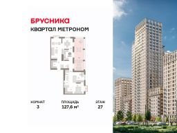 Квартира с кухней-гостиной и тремя спальнями в квартале "Метроном". Особенности планировки: балкон, без отделки, вид во двор, второй санузел, мастер-спальня, окна в пол, окно в коридоре, терраса на крыше, французский балкон.