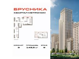 Квартира с кухней-гостиной и тремя спальнями в квартале "Метроном". Особенности планировки: ипотека 8%, окно в коридоре, без отделки, вид во двор, панорамное остекление, разнесённые спальни, мастер-спальня, балкон, терраса на крыше.