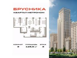 Квартира с кухней-гостиной и тремя спальнями в квартале "Метроном". Особенности планировки: ипотека 8%, гардеробная, вид во двор, разнесённые спальни, предчистовая отделка, мастер-спальня.
