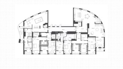 Планировка: гостиная, кухня-столовая, четыре мастер-спальни, кабинет, гостевая комната с личной кухней, постирочная. Пентхаус состоит из объединения 5 квартир общей площадью 570 м². Одна из квартир 128 м² — с готовой предчистовой отделкой. В ней можно расположить дополнительно три мастер-спальни. Из окон открывается панорамный вид на город. Предусмотрено два машиноместа в подземном паркинге.
