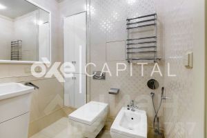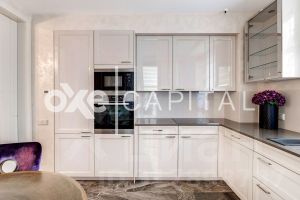 • Квартира предлагается с новой дизайнерской отделкой с использованием ценных пород дерева, мрамора и современных инженерных решений. Полностью меблирована и оснащена качественной техникой (Miele,Daikin), сантехника (Villeroy&Boch), готова к проживанию.