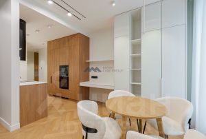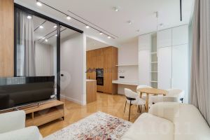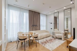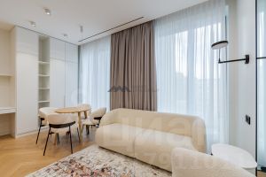 Отделка выполнена из дорогостоящих премиальных материалов, апартамент укомплектован всей необходимой мебелью и бытовой техникой.