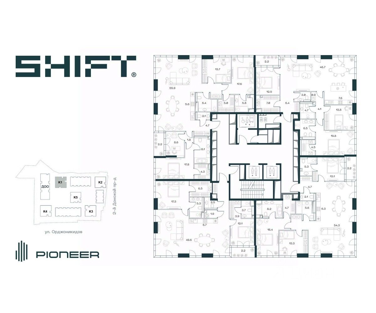 SHIFT - новый премиальный проект от девелопера PIONEER в Донском районе, в 300 м от Нескучного сада.