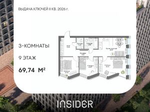 Просторный трехкомнатный лот в Доме на набережной INSIDER. Сервисные лоты с системой "умный дом" на первой линии Москвы-реки.