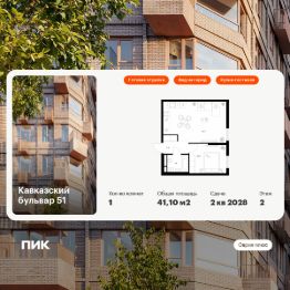 Продаётся 1-комн. квартира площадью 41,1 кв.м на 2 этаже 23 этажного дома (Корпус 3.3, Секция 3) проекта ПИК Кавказский бульвар 51. Светлый просторный подъезд на уровне земли, функциональная планировка, большие окна, c отделкой.