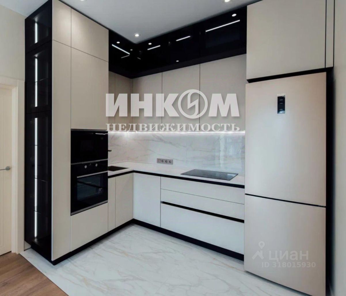 Корпусная мебель в коридоре, кухне и ванной комнате выполнены из МДФ; кухонная мебель фирмы "Стильные кухни" с подсветкой и с системой выдвижения ящиков BLUM. В спальне за скрытой дверью установлена вместительная гардеробная комната.