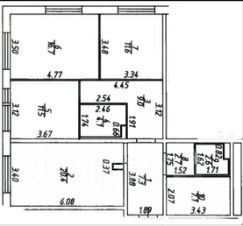 комнаты раздельные 16.7 кв м, 11.6 кв м и 11.5 кв м.