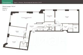 Функциональная планировка включает в себя просторную зону кухни-столовой-гостиной, мастер спальню с ванной и гардеробной комнатами, вторую спальню с ванной комнатой, кабинет, постирочную, гардеробную, гостевой санузел.
