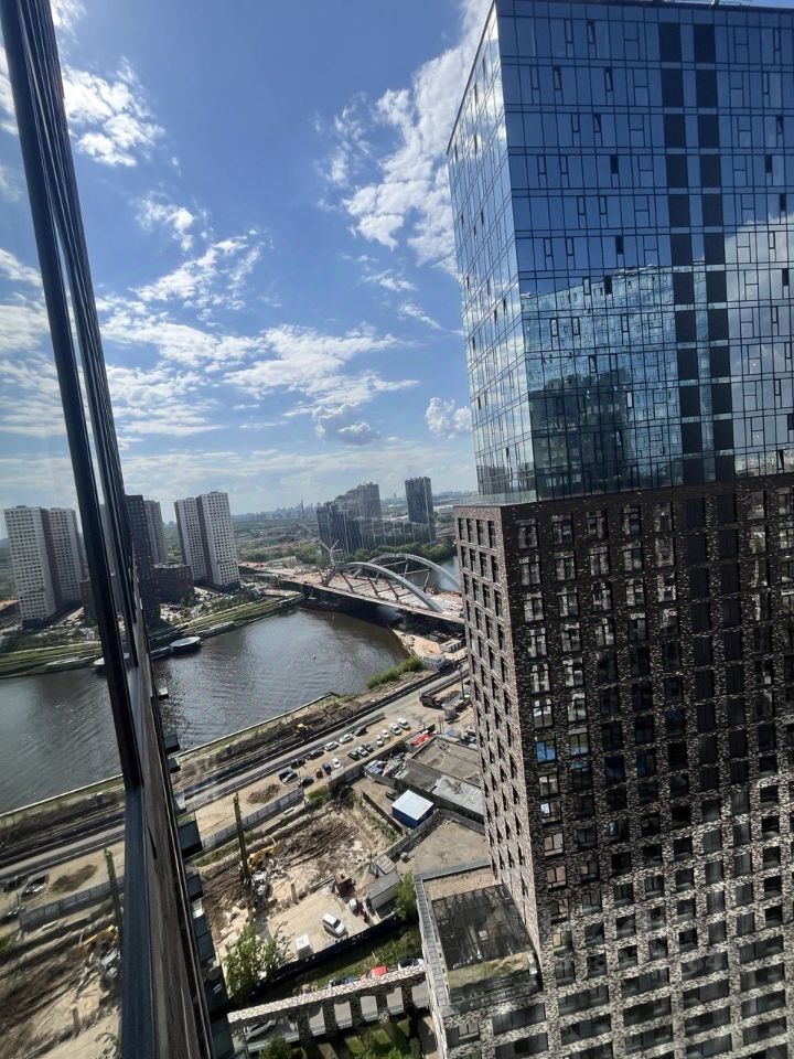 Продается стильная однокомнатная квартира в новом доме на Причальном проезде, дом 10к1. Общая площадь 37 кв. м, жилая площадь 15 кв. м и просторная кухня площадью 18 кв. м. Квартира находится на 22 этаже 32-этажного дома, построенного в 2023 году. Высота потолков 4 метра, что создает ощущение простора и света.