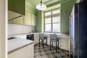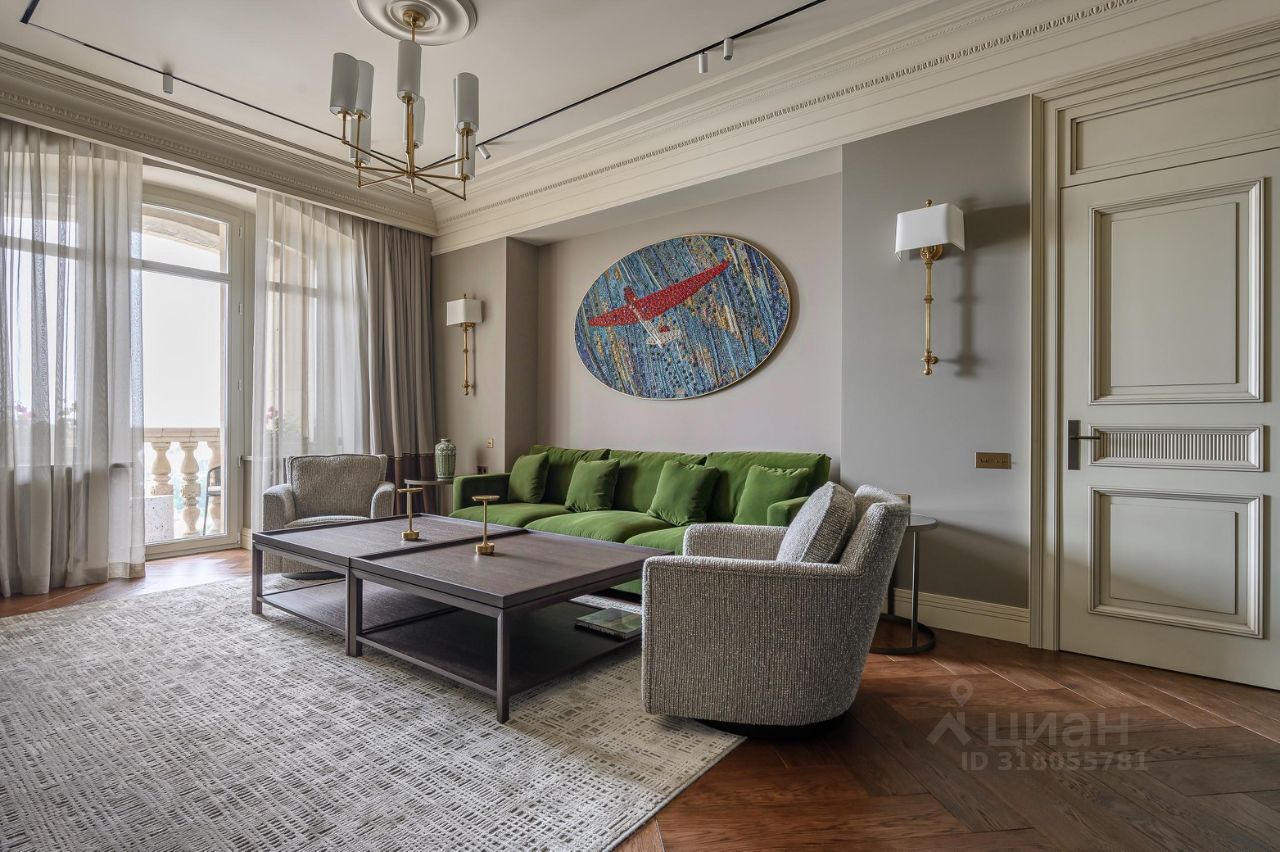 Квартира выполнена в безупречном стиле, подчеркивающем величие сталинской эпохи. В отделке использованы только премиальные материалы: