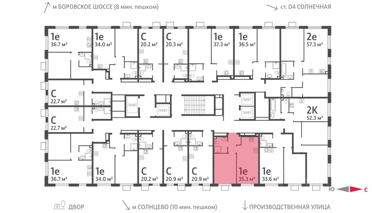 Комплекс располагается в 5 минутах ходьбы от станции метро "Солнцево" и в шаговой доступности от железнодорожной станции "Новопеределкино".