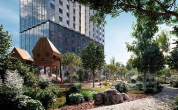 Концепция иммерсивности — это когда вы будто растворяетесь в природе. Сенсорные сады, зелёные зоны, пешеходная эко-тропа, которая плавно ведёт из квартала прямо в парк.