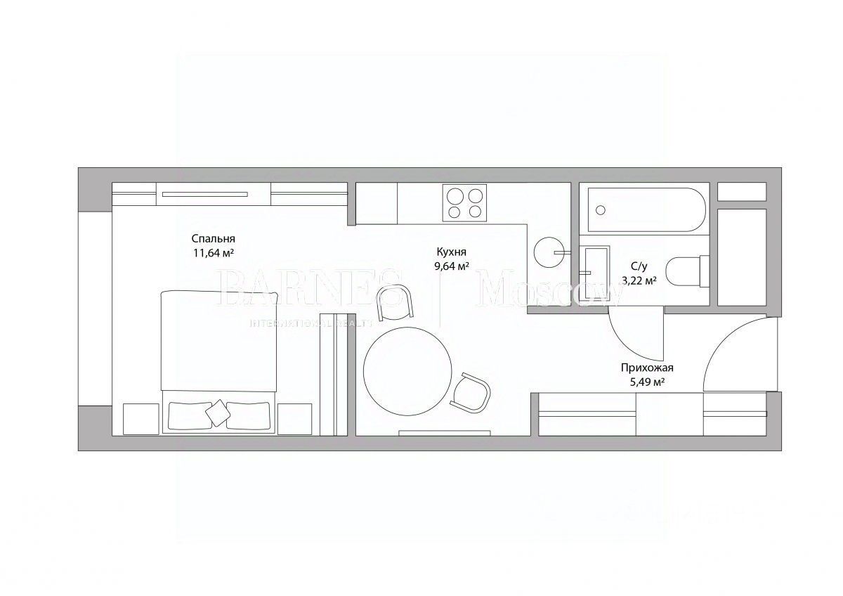 Видовая 1-комнатная квартира площадью 28.88 кв.м. на 28 этаже в современном многофункциональном квартале жилых небоскрёбов HEADLINER.