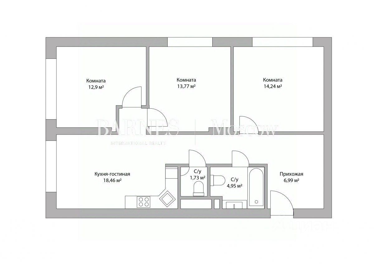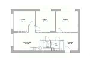 Квартира с отделкой Вайт Бокс с возможностью разместить: 3 комнаты, кухню, 2 санузла.