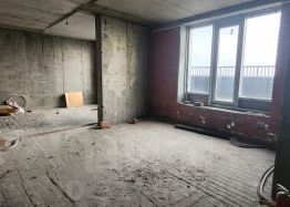 О квартире: общая площадь 75 кв.метров, из них площадь по ЕГРН 57 кв.метра, и терраса 18 кв.метров. Квартира без отделки, свободной планировки -в бетоне, с момента постройки дома. Высота потолков 3.2 метра. В квартире 3 панорамных окна, выход на террасу возможен из двух комнат. Имеется дизайн-проект на квартиру.