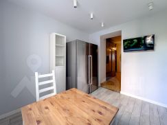 Жилая площадь квартиры дополняется двумя большими остеклёнными пространствами — балконом площадью 4,63 м² и лоджией 4,11 м². Остекление выполнено из качественного оконного профиля Rehau — это не только комфорт, но и минимальные затраты на будущую отделку. На кухне сделан аккуратный косметический ремонт. Общая площадь квартиры с учетом балкона и лоджии составляет 84,3 м².