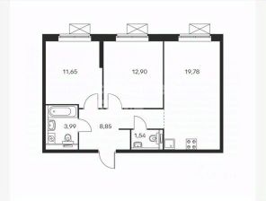 Удобная планировка площадью : 56.8 кв. м