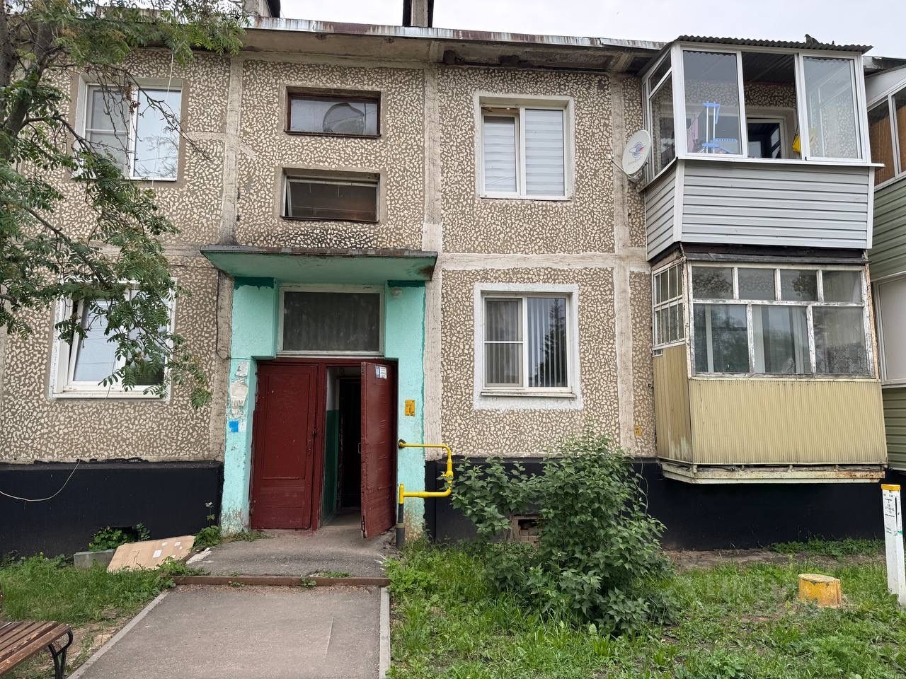 Квартира расположена на первом этаже двухэтажного дома советской постройки, окна выходят на две стороны, одна из которых - на спокойный зелёный дворик с детской площадкой и местом для прогулок. Комнаты светлые, выполнен косметический ремонт стен и потолков.