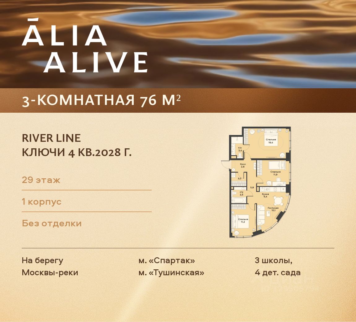 Одна из самых ярких и впечатляющих частей жилого района ALIA — премиальный квартал ALIA ALIVE. Это две башни LIGHTHOUSE от бюро APEX на первой береговой линии Москвы-реки с закрытым внутренним двором, детскими и спортивными площадками. Во всех квартирах — высокие потолки и панорамные окна, из которых открываются вдохновляющие виды на реку и зеленые массивы парков. Среди редких форматов — квартиры с террасой, двухуровневые квартиры и пентхаусы.