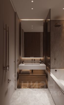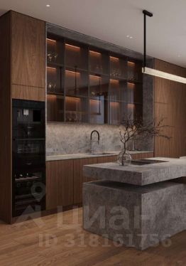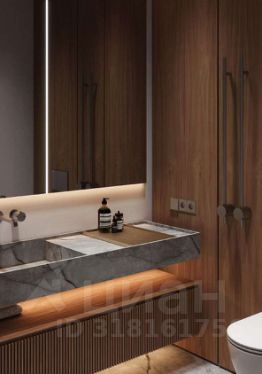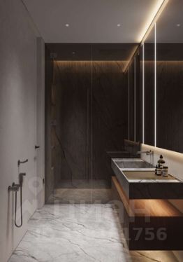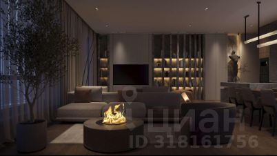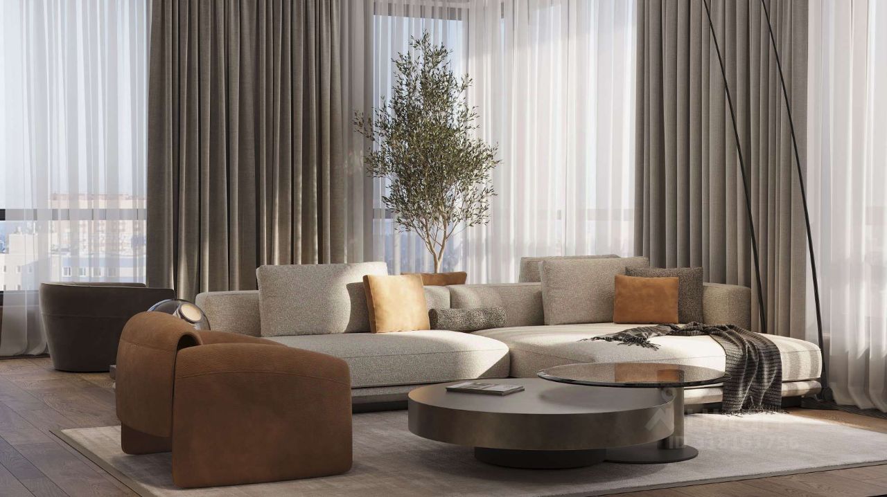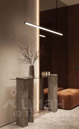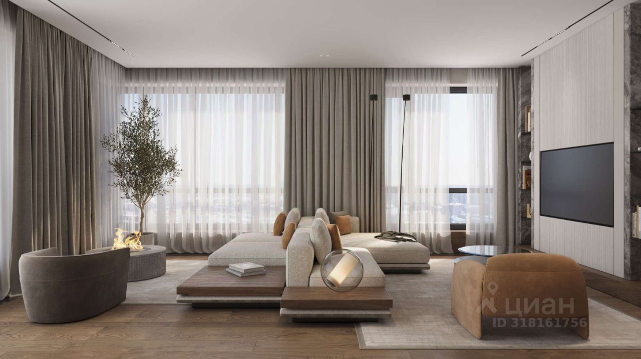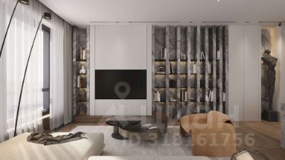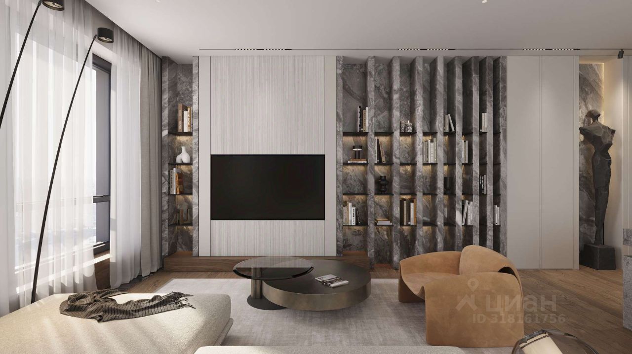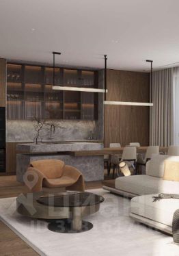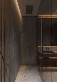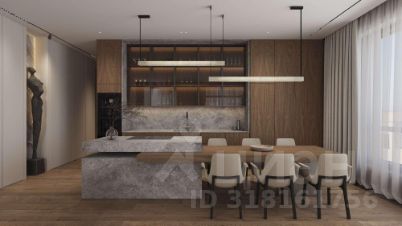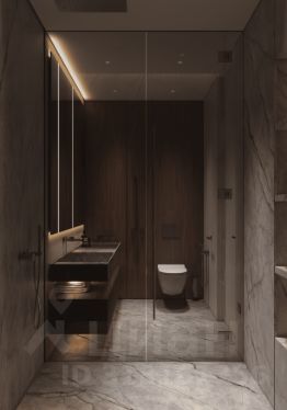 В квартире выполнена премиальная дизайнерская отделка с использованием высококачественных и натуральных материалов, таких как: натуральный мрамор, шпон дуба, сатинированная сталь, декоративная штукатурка.