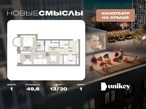 В жилом комплексе, расположенном по соседству с ландшафтным парком "Южное Бутово", продается 1-комнатная квартира площадью 49.60 кв. м. без отделки. Квартира расположена на 13 этаже 1 корпуса в жилом квартале комфорт-класса "Новые Смыслы" (ГК Unikey/Юникей).