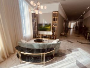 • Статусный подъезд с камином, библиотекой и мягкими зонами