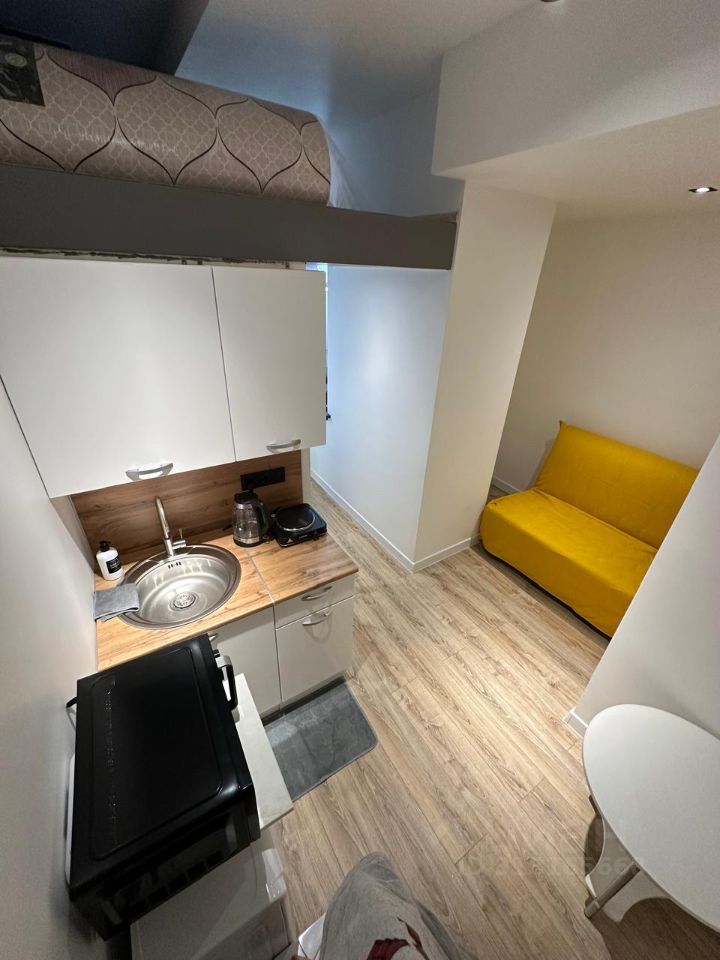 Апартаменты площадью 13,5 кВ.м , высота потолка 3,5метра, высота второго уровня 1,3 метра. С дизайнерским ремонтом и мебелью, все необходимое для жизни есть. Заезжай и живи!