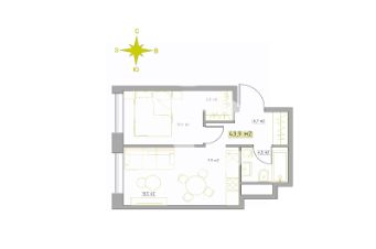 Планировка: кухня-гостиная, отдельная просторная cпальня, гардеробная, совмещенный су, холл.