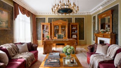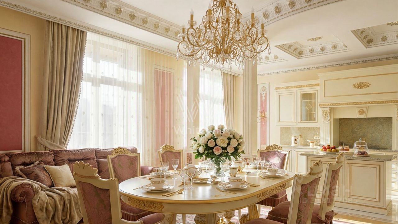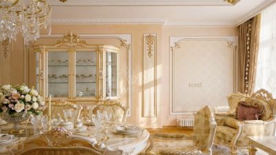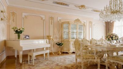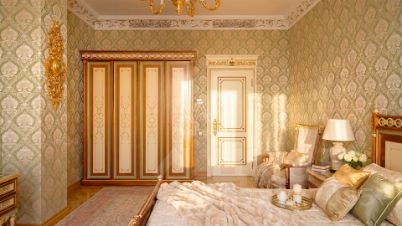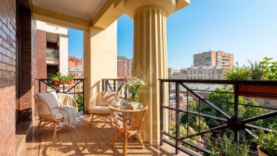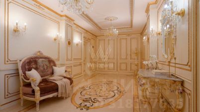 Просторная квартира в комплексе премиум-класса "Онегин" на шестом этаже. Премиальная дизайнерская отделка в стиле дворцовой классики, интерьер украшен изящной лепниной, колоннами. Высокие потолки (3,2 метра) с кессонами, панорамные окна, большое количество света.