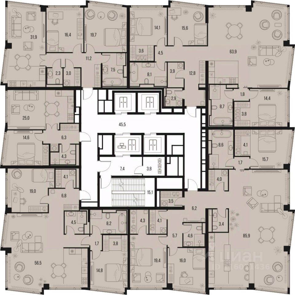 3-к квартира квартира в премиальном комплексе HIGH LIFE на 19-м этаже в 24 этажном здании. Общая площадь 119.4 кв. м.