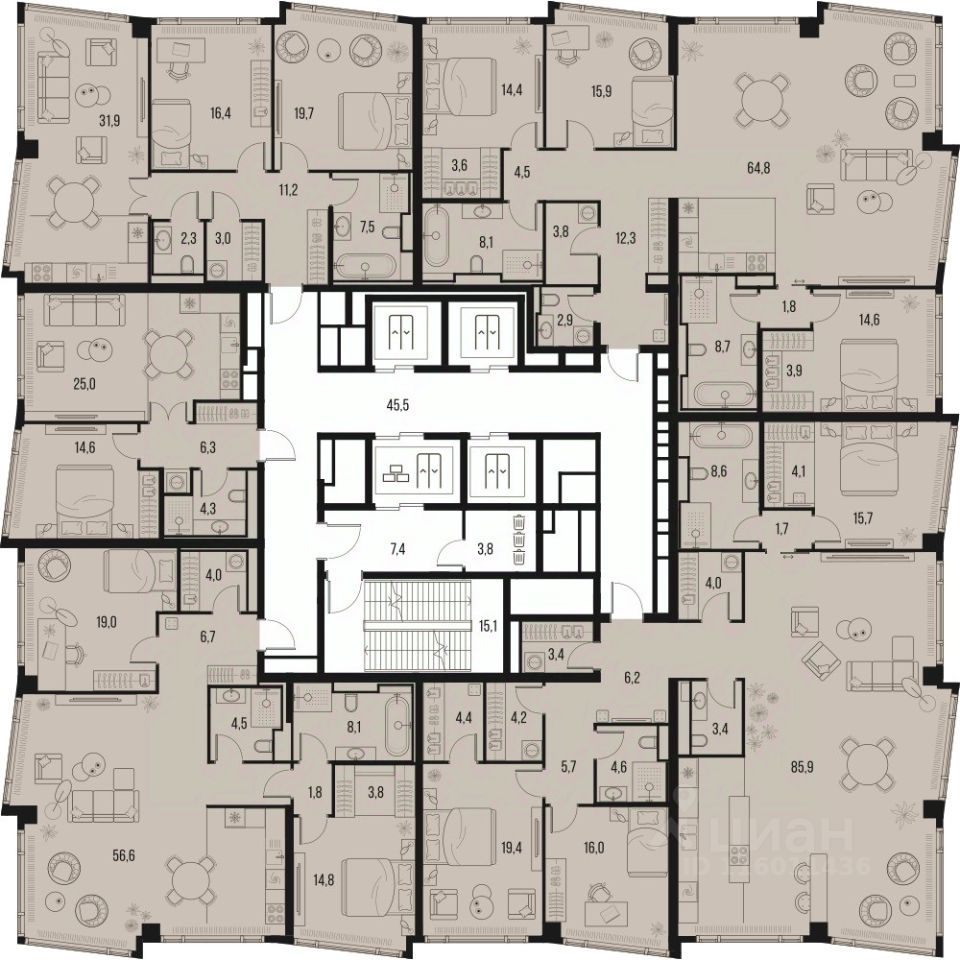 3-к квартира квартира в премиальном комплексе HIGH LIFE на 21-м этаже в 24 этажном здании. Общая площадь 119.3 кв. м.