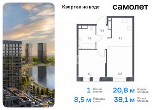 Предлагается меблированная квартира формата 2Е в ЖК бизнес-класса "Квартал на воде" площадью 38.1 м² в 1 корпусе.